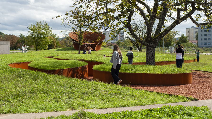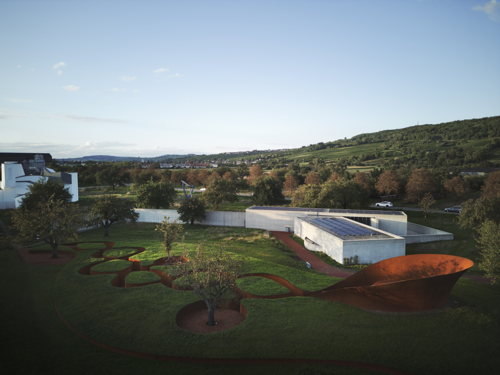 Inspired by Indian spirituality, it offers a sensory journey of sound and serenity. Reflecting on the remarkable transformation of the Vitra Campus in Weil am Rhein over recent decades, Vitra’s chairman emeritus Rolf Fehlbaum notes: ‘Although it remains an industrial site, the campus has become a public park that now attracts 400,000 visitors annually. People come to see its architecture, explore the collections and exhibitions of the Vitra Design Museum, and enjoy the gardens, restaurants and shops. While the expansion of the campus initially took a toll on the natural environment, the area has been reimagined as a biosphere in recent years – with the planting of gardens and woods, the creation of ponds, and a reduction in paved surfaces.’