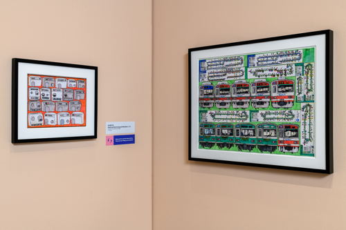 - Allen Yu: Yu’s colorful drawings meticulously catalogue the nuances and variety in different categories of objects, from train cars to McDonald’s sandwiches - with details inscribed on the back of many of these drawings. These lively, engaging works prompt a joy and exploration in ordinary objects, inviting viewers to find beauty in the overlooked.