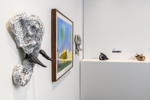 The works on view were selected by the curatorial team to emphasize these varied and compelling perspectives on the world. Led by Jennifer Gilbert, a UK-based curator whose work focuses on inclusivity and using art as a platform for overlooked voices, artists Mary T. Bevlock and Paige Donovan chose pieces in coordination with their peers and colleagues that are not only representative of the studio, but inspiring to the community in their approach and realization.