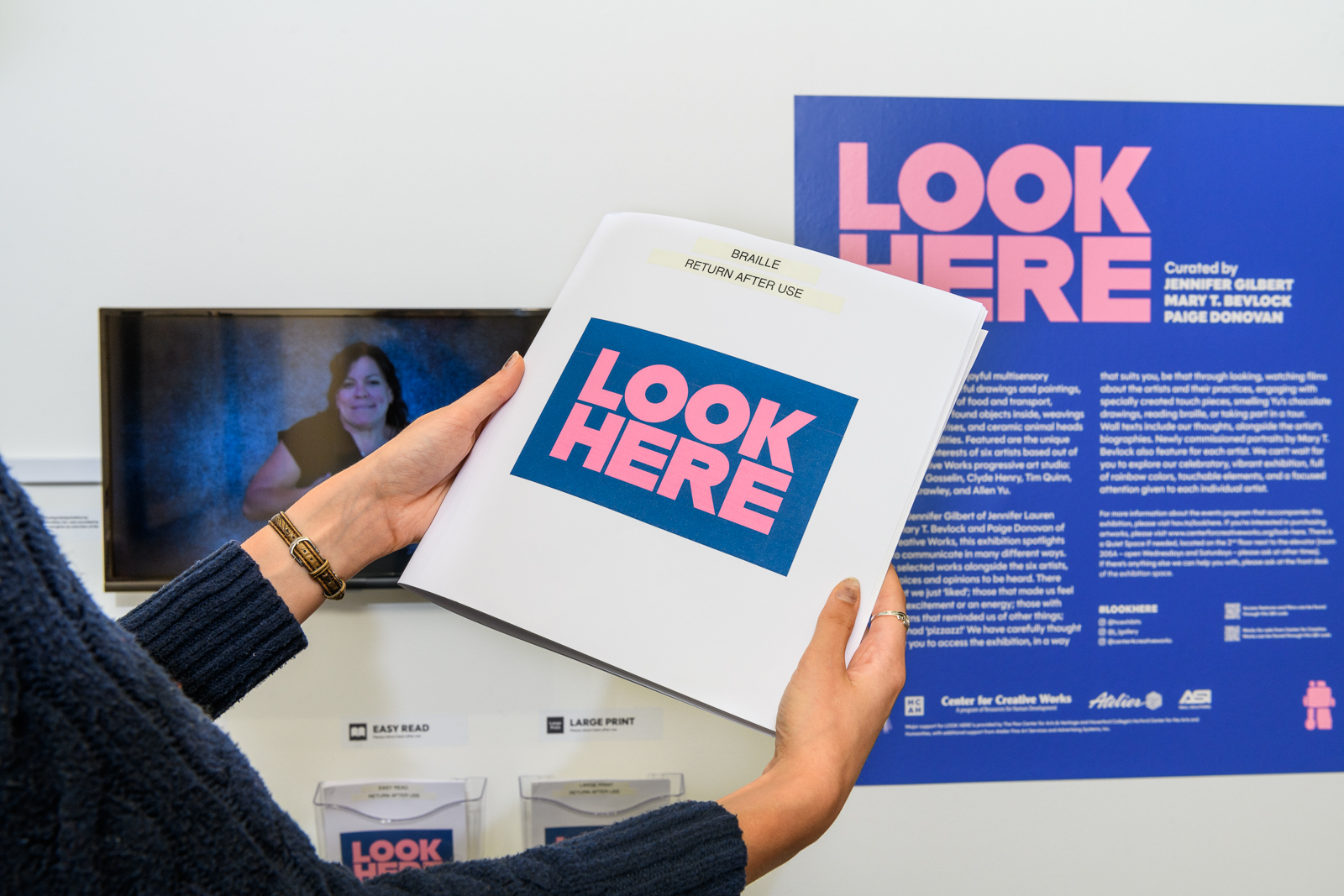 LOOK HERE will be complemented by a series of related events, including two satellite exhibitions – one at Haverford’s VCAM gallery, LOOK THERE, featuring a single work from a larger group of 105 CCW artists, curated by Bevlock and Donovan, and another, LOOK EVERYWHERE, at Philadelphia's Atelier Gallery in October, featuring works from 33 artists from progressive art studios around the country, also curated by Jennifer Gilbert. These exhibitions will coincide with the 6th annual Creating Community Symposium, which brings together professionals from progressive art studios nationwide to discuss best practices, advocacy, and the evolving intersection of art and disability. Originally started by California’s Creative Growth Art Center, the nation's most widely known progressive art studio, this is the first time the gathering will be held on the East Coast.